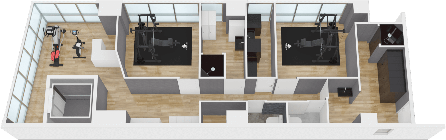 都内随⼀の広い完全個室、⾼い換気能⼒を持つガラス張りの店内だからこそ、安⼼してペアトレーニングをして頂けます。